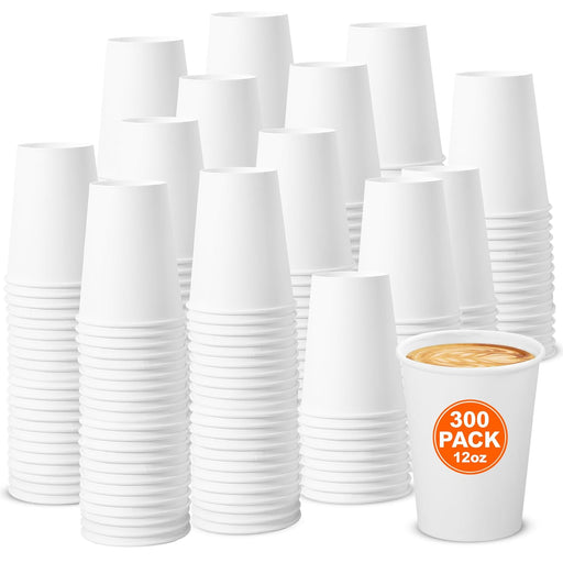 iBasics Coffee Cups [12 oz 300 pack] - Disposable Hot Cups | White Paper Cup for Beverages | Ideal Paper Coffee Cups for Office, Events | Durable Paper Cups 12 oz Size for Hot Drinks