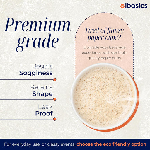 IBASICS 16 oz Paper Coffee Cups [Case of 200] Large Disposable Hot Cups | Durable White Paper Cup for Beverages | Perfect for Home, Office, and Events, Multi-Purpose Coffee Cups 16 oz