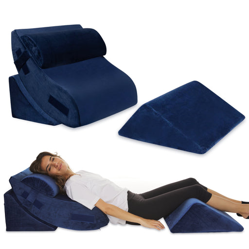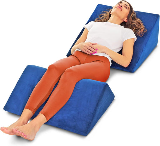 Bed Wedge Pillow – 2 Separate Memory Foam Incline Cushions, System for Legs, Knees and Back Support Pillow | Acid Reflux, Anti Snoring, Heartburn, Reading – Machine Washable, Navy