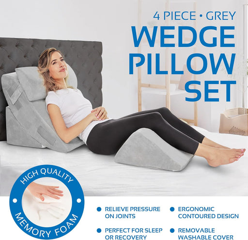 4 pcs Bed Wedge Pillow - Post Surgery Advanced Adjustable Pillow Set with Memory Foam - Relief System for Shoulder Back, Neck and Leg Elevation | Acid Reflux, Anti Snorin - Machine Washable Cover