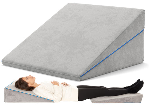 Bed Wedge Pillow – 2 Separate Memory Foam Incline Cushions, System for Legs, Knees and Back Support Pillow | Acid Reflux, Anti Snoring, Heartburn, Reading – Machine Washable, Grey