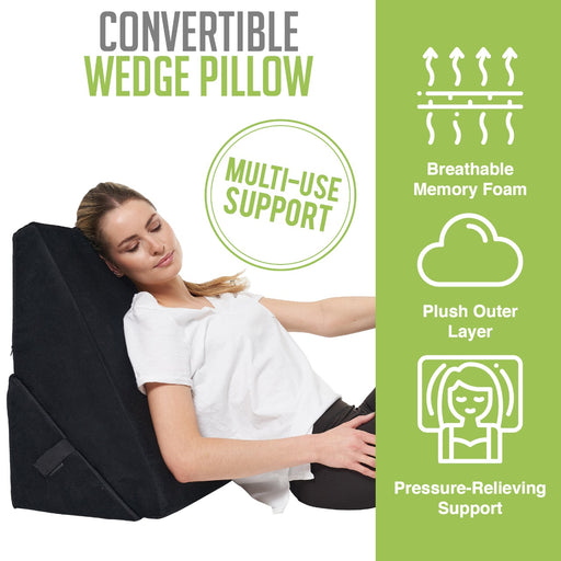 Memory Foam Bed Wedge pillow for sleeping – 3 In 1 Support - Adjustable to 4.5, 7.5 & 12 Inches – Combination Zipper Technology | Acid Reflux, Anti Snore, Machine Washable