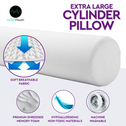 AllSett Health XXL Memory Foam Round Cervical Roll Cylinder Bolster Body Pillow with Removable Washable Cover | Ergonomically Designed Back, Neck and Spine Relief, 47” in Long x 7.5” Wide