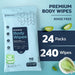 240 XL Shower Wipes – Body Wipes for Adults Bathing No Rinse – 24 Packs of 10 – Extra Moist Bath Wipes with Aloe & Vitamin E for Camping, Travel, Gym & Bedridden Care